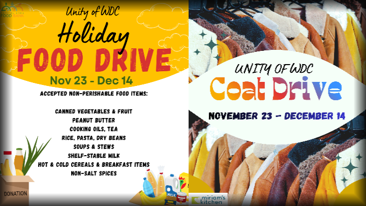 Unity of Washington, DC is partnering with @capitalareafoodbank for our Annual Holiday Food Drive! Join us in sharing love and support to individuals and families in need this holiday season!